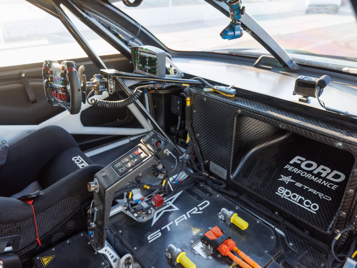 O seu sistema de freio de carbono, as rodas de magnésio forjado e os pneus Pirelli P-Zero são projetados para suportar as 156 curvas extenuantes até o topo de 4.302 metros. Na configuração para Pikes Peak, o Mustang Mach-E gera uma força descendente de 3.129 kg a 241 km/h, superando a da F-150 Lightning SuperTruck do ano passado.
