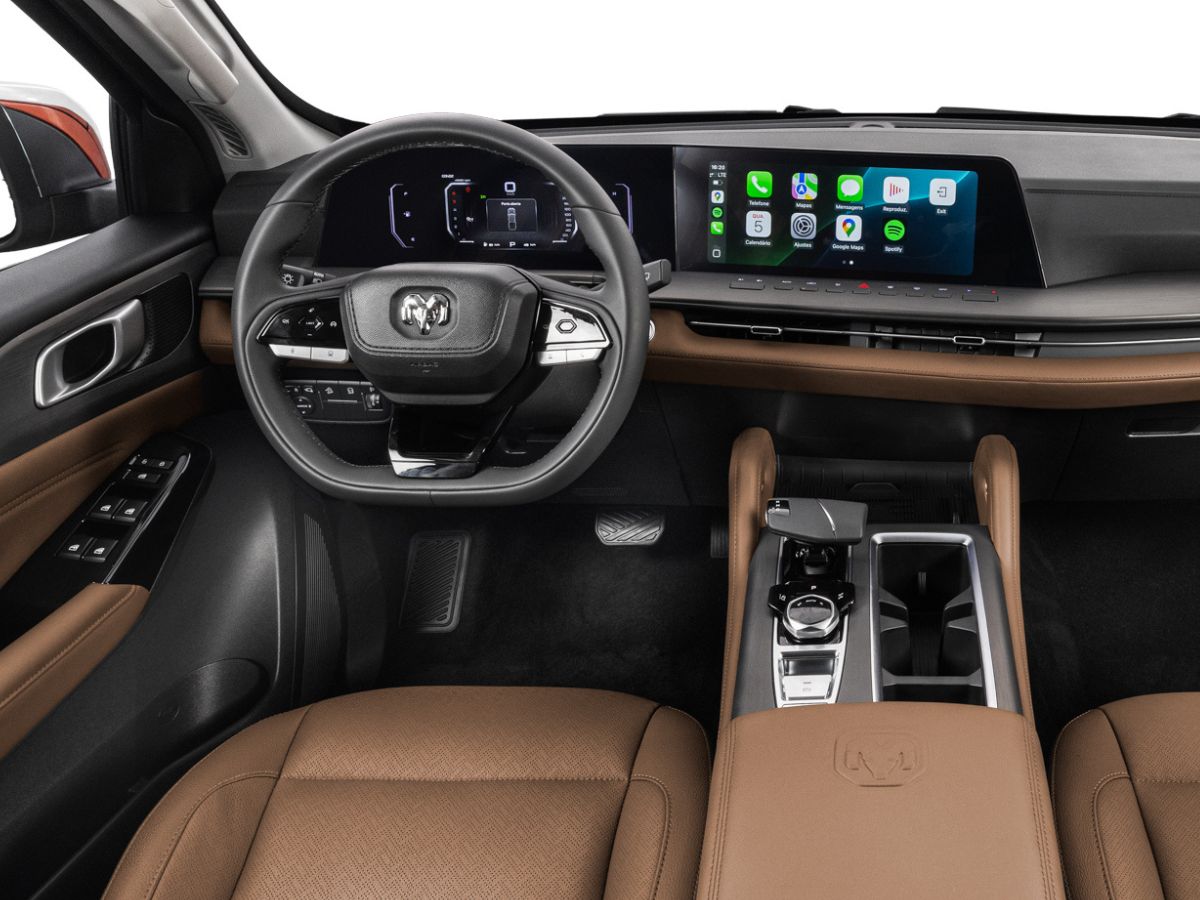 O interior possui bancos com revestimento de couro premium no tom marrom, material que também reveste os painéis de porta e de instrumentos e que contam com materiais macios ao toque. Destaque para o console central duplo, onde na parte superior estão localizados dois porta-copos, diversos comandos e um apoia-braço com porta-objetos. Na parte inferior, encontram-se outro porta-objetos e duas portas USB, sendo uma do tipo C, de carregamento rápido, além de uma tomada de 12V.